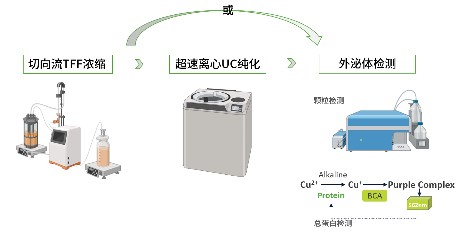 根据TFF+UC或TFF标准流程进行纯化,交付外泌体、检测报告和原始数据。