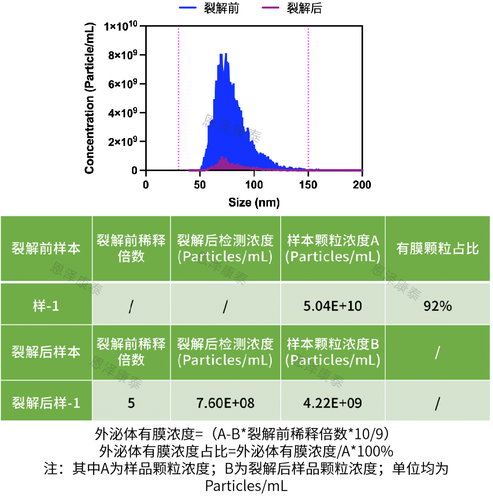 Triton-100具有破膜功能,可对有膜颗粒如外泌体进行裂解,而对无膜颗粒无影响,通过Triton-100裂解后便可检测外泌体样品中有膜颗粒占比,是外泌体纯度的另一种反映。