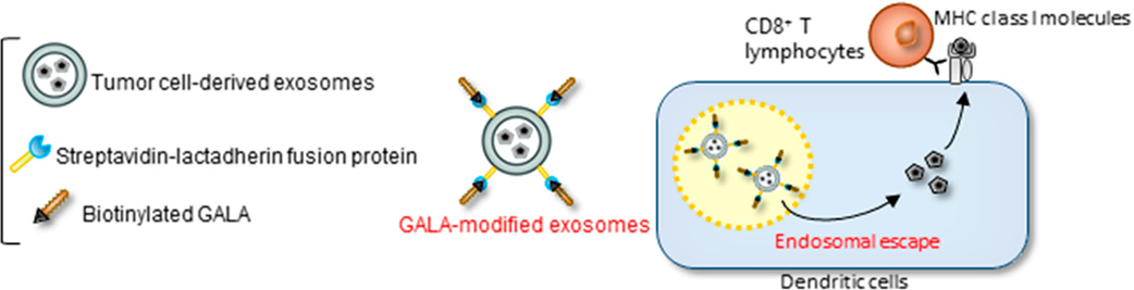 外泌体外载荧光标记的GALA多肽,有效地将外泌体货物递送到细胞质。经GALA-exo处理的DC可增强MHC I类分子对肿瘤抗原的递呈能力。