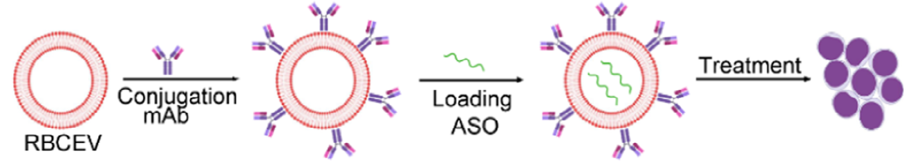 CD33抗体偶联的外泌体可以显著增加CD33阳性急性髓性白血病AML细胞的摄取,负载了治疗性小核酸ASO的工程化外泌体可以在体外、体内AML模型中抑制白血病的进展。