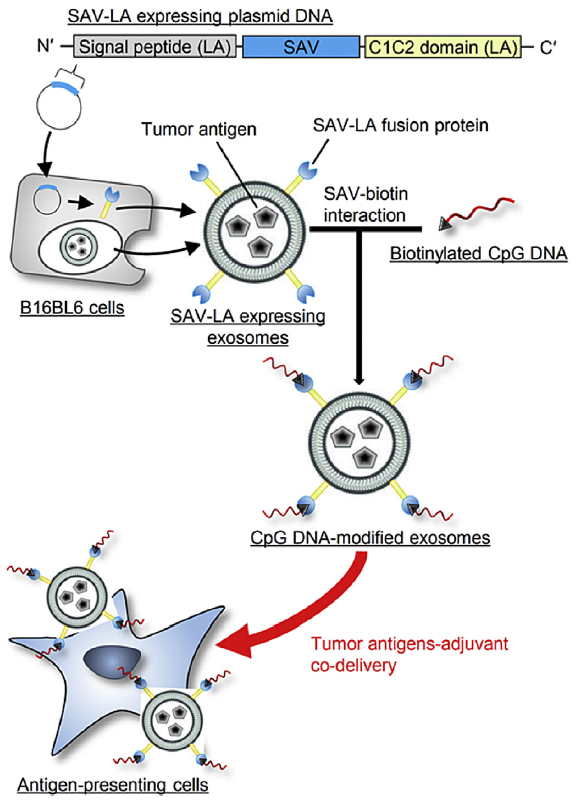 基于外泌体进行肿瘤抗原-佐剂共递送用以递送具有免疫刺激作用的CpG DNA