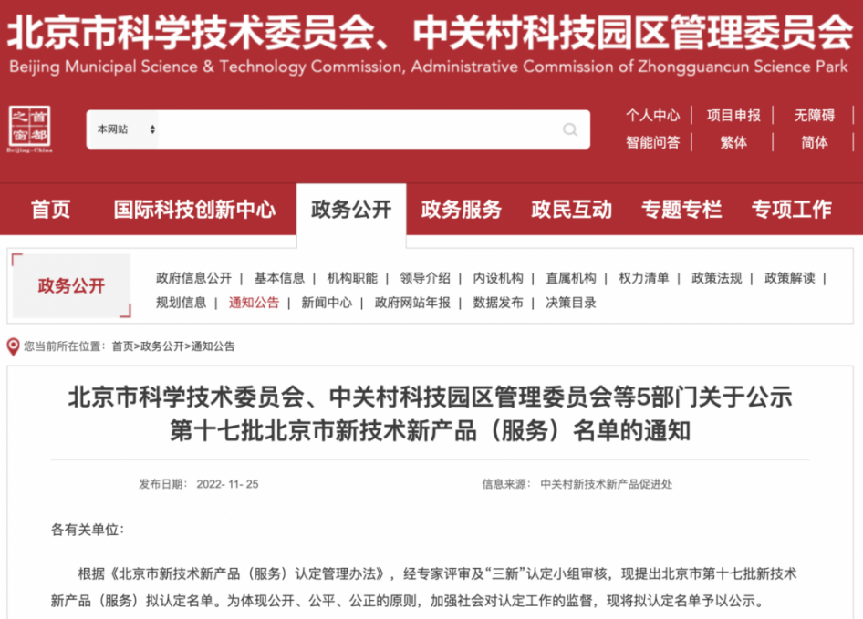 北京市新技术新产品(服务)认定由北京市科学技术委员会、中关村科技园区管理委员会、北京市发展和改革委员会、北京市经济和信息化局、北京市住房和城乡建设委员会、北京市市场监督管理局联合开展,根据《北京市新技术新产品(服务)认定管理办法》,经由专家评审及“三新”认定小组严格审核,主要面向在京企业、高校院所、新型研发机构和社会组织所取得的技术先进、产权明晰、质量可靠、市场前景广阔的新技术新产品(服务)。经过认定的新技术新产品(服务),可享受政府采购和推广应用等政策支持,属于北京市重点支持的战略新兴领域范围,认证的资质具有较高的权威性。