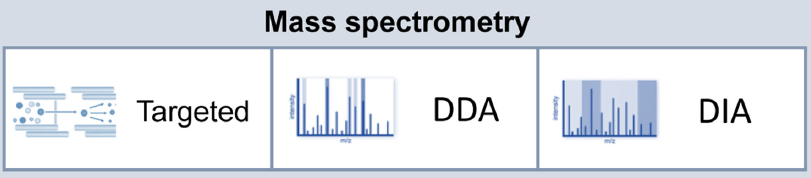 直到几年前,大多数蛋白质组学实验都是使用数据依赖性采集(data-dependent acquisition,DDA)方式进行的,其中在MS1中检测到的更强的肽离子在MS2中被自动选择、片段化和分析。肽电离的随机性导致离子强度的可变性,从而导致选择离子用于MS/MS的可变性以及MS/MS谱图的质量(信息含量)的可变性。最终结果是,来自不同生物样本的数据集没有识别和量化同一组蛋白质;或者换句话说,DDA模式的lable-free定量蛋白质组学数据集将包含很多缺失值,并且这主要影响较低丰度的蛋白质。近年来,数据非依赖性采集(data-independent acquisition,DIA)技术出现,指定m/z范围内的所有前体离子都同时进行MS碎片化,复杂的MS2谱图与包含碎片离子谱图、前体离子精确质量及其归一化保留时间的谱图库搜库比对。DIA在增加已鉴定肽的数量、提高定量精度和增加重现性方面具有显著优势,因此是目前深入蛋白质组学分析的首选方法。