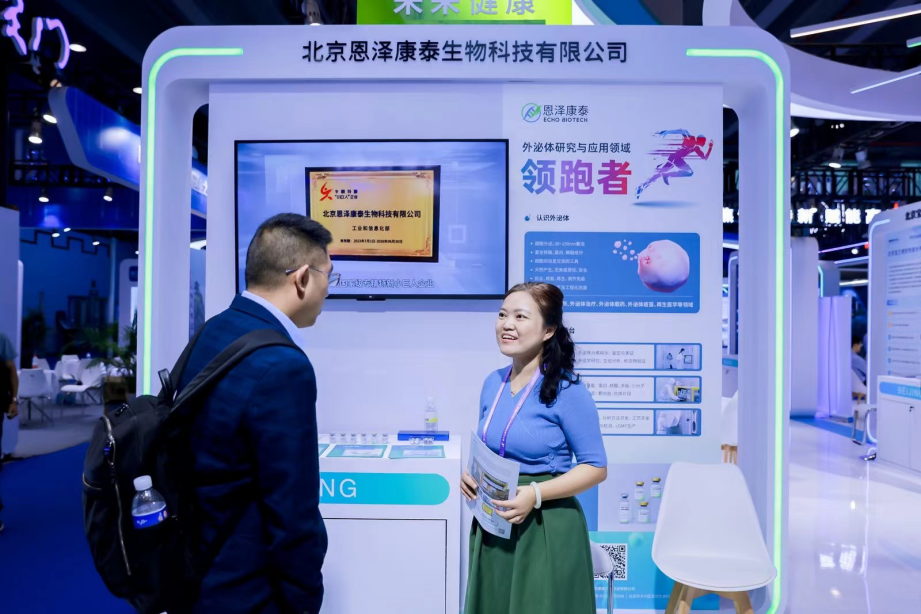 本次北京市以“专精领航 共筑未来”为主题,精选15家专精特新中小企业,围绕“未来健康、未来信息、未来制造”三大核心领域,精彩亮相本次展会,展现了首都中小企业的创新活力与无限潜力。其中,恩泽康泰作为未来健康产业的优质企业代表,以其在外泌体科研及产业化方面的卓越成就,成为北京展区的一大焦点。