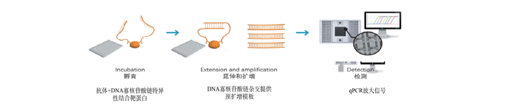 将蛋白信号转化为核酸信号,有效检测范围fg-μg/ml,灵敏度甚至高于ELISA,适合大样本量临床样本检测,及筛选鉴定标志物