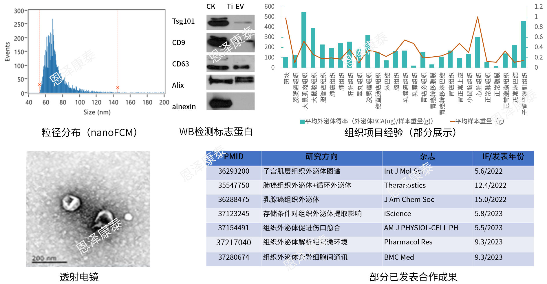 恩泽康泰自20下半年推出组织外泌体服务以来,在前期研发基础上,总结项目经验不断打磨组织外泌体分离技术,建立自有研发技术的组织外泌体分离提取平台,可承接包括临床样本、大鼠、小鼠在内的多种组织样本类型的组织外泌体提取和表征服务,欢迎垂询!